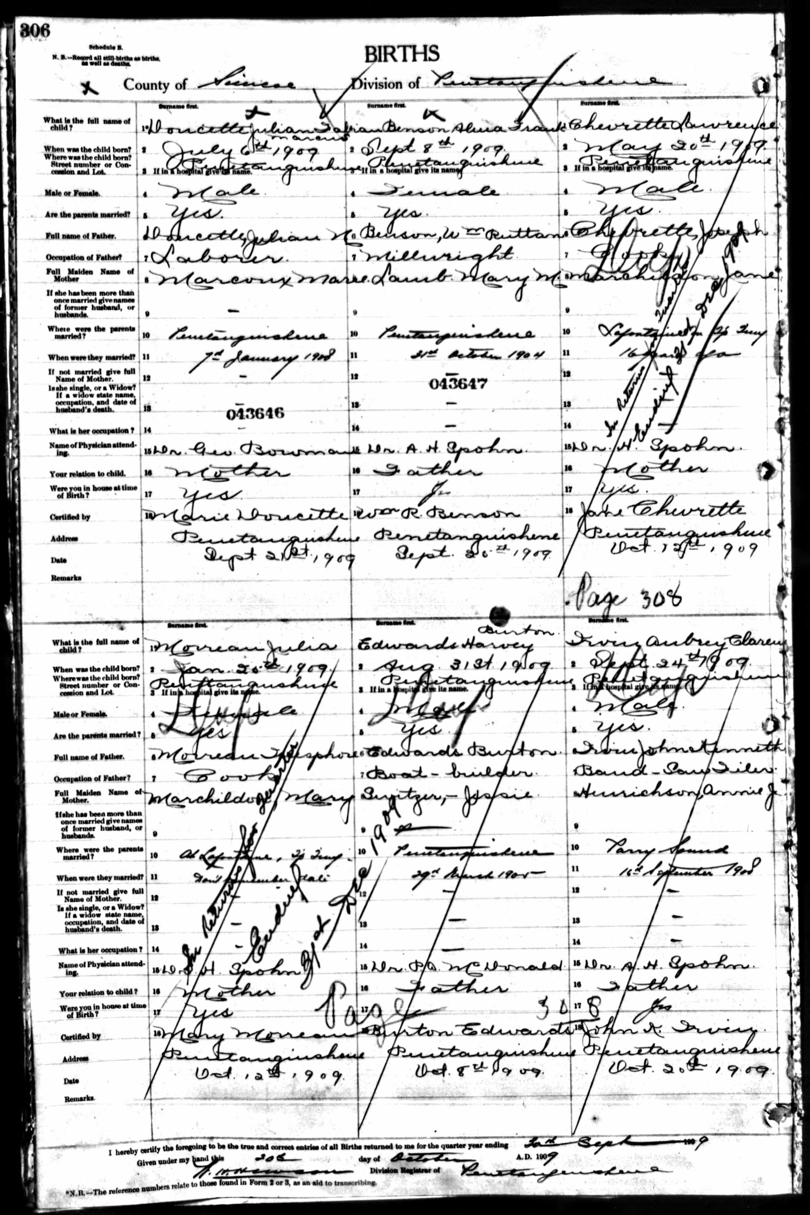 Birth Penetanguishene, Simcoe, Ontario, Canada 8 Sep 1909 Alma Franke Benson.