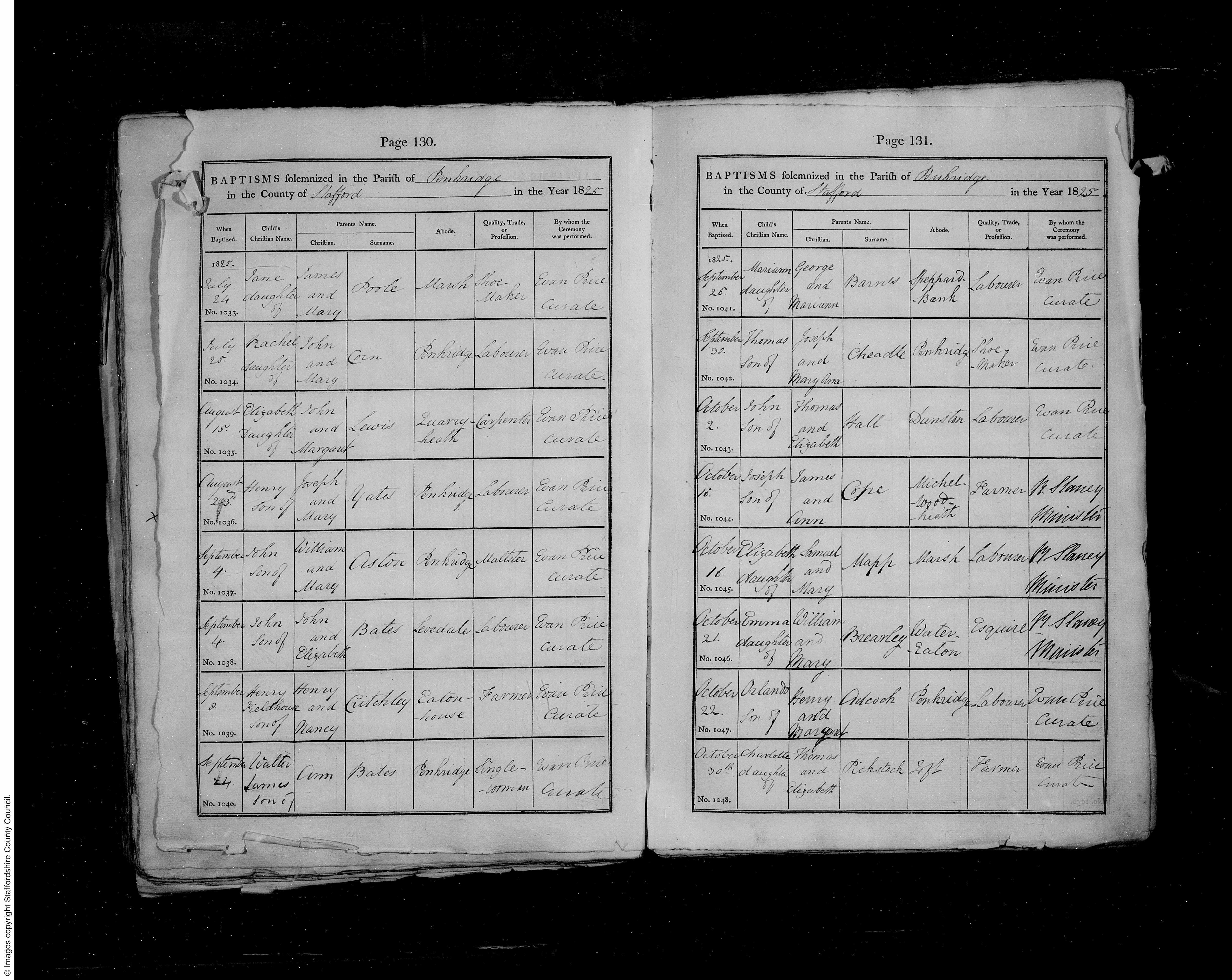 Parish Register for Baptism of Emma Brearley, St Michael and All Angels, Penkridge, Penkridge, Staffordshire, England, October 21, 1825.
