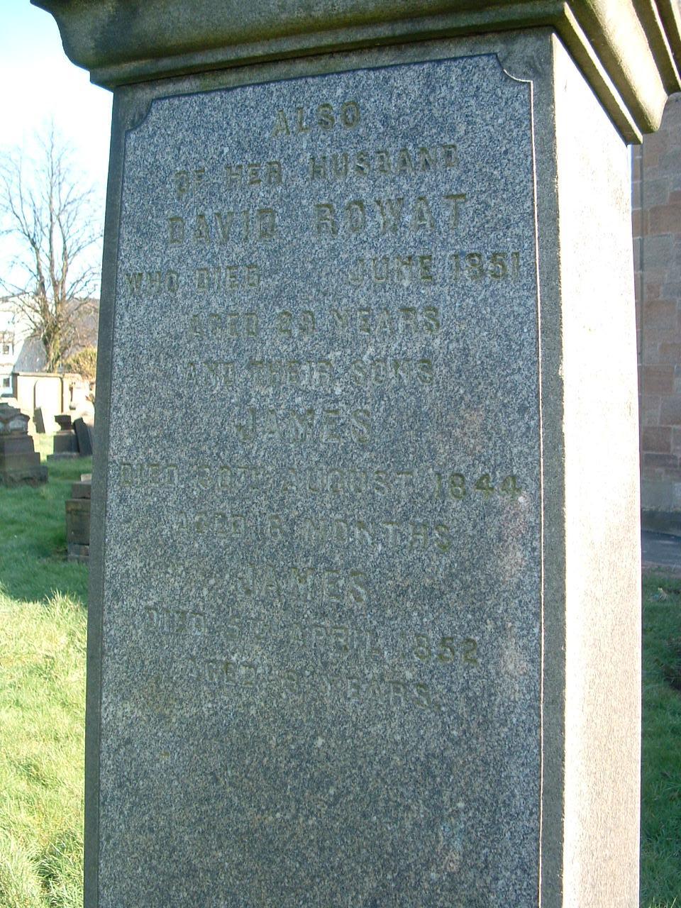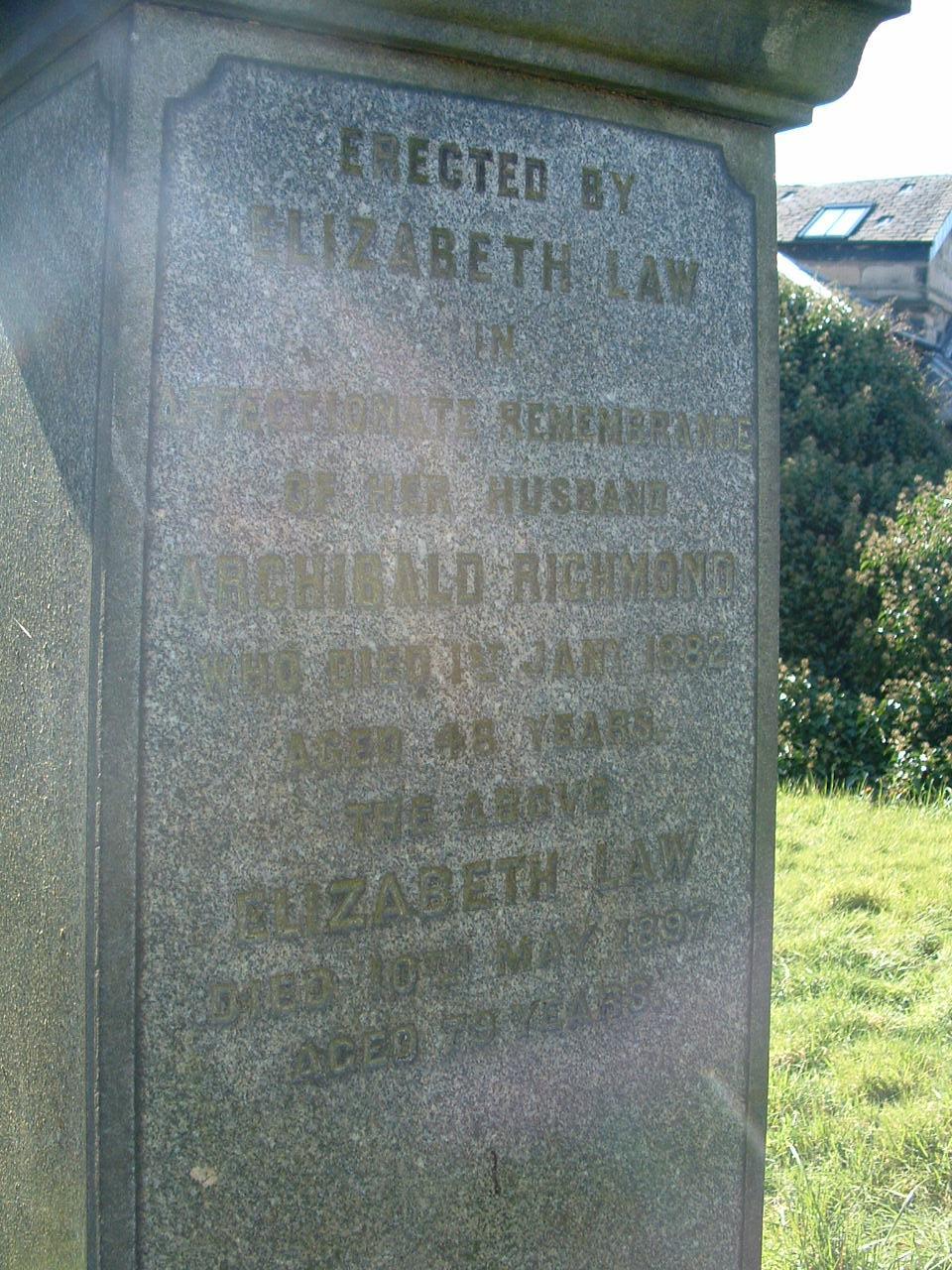 Gravestone for Elizabeth Law; Archibald Richmond; David Rowat; James Rowat; James Rowat: Saint Andrews Glencairn Parish Church;