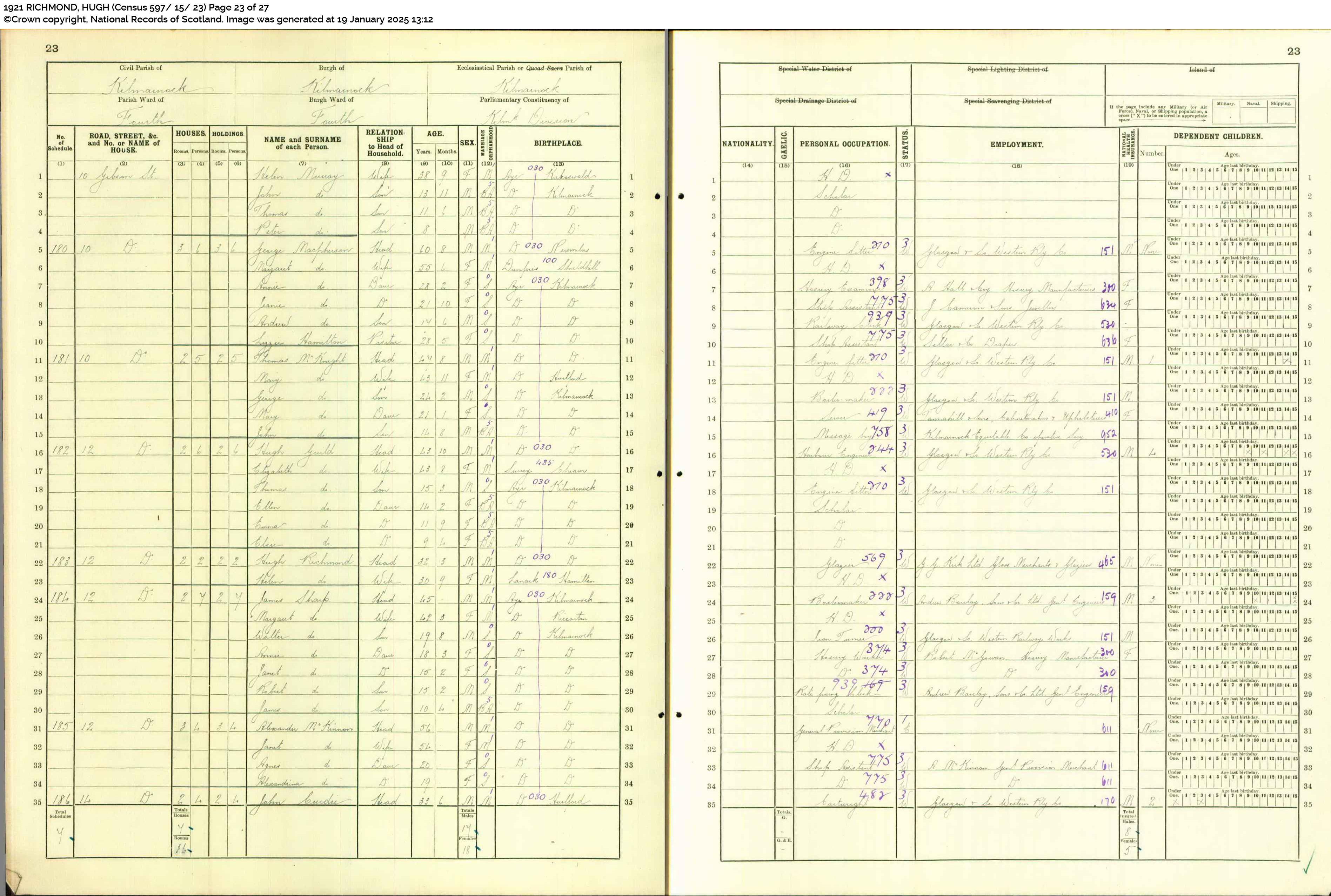 Census 1921 Kilmarnock, Ayrshire, Scotland C 1921, 597/15/23, (C 1921, 597/15/23).